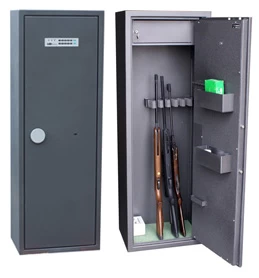 Сейф IVETA PEM полностью отвечает требованиям МВД РФ к хранению огнестрельного оружия (заключение НИЦ «Охрана» МВД РФ) и может предоставить вам надёжное содержание не менее пяти ружей длиной до 1.3 метра, а также боеприпасов и небольшого количества ценностей и денег.